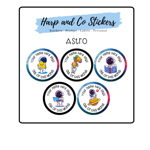 Astro Stickers Take your celebrations to new heights with our Astro stickers! Featuring astronauts and a space-themed background with the text "Out...
