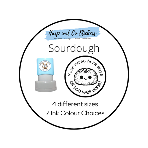 Sourdough Personalised Stamp Serve up a slice of fun with our Sourdough Personalised Stamp! Featuring an adorable sourdough loaf and the clever phr...