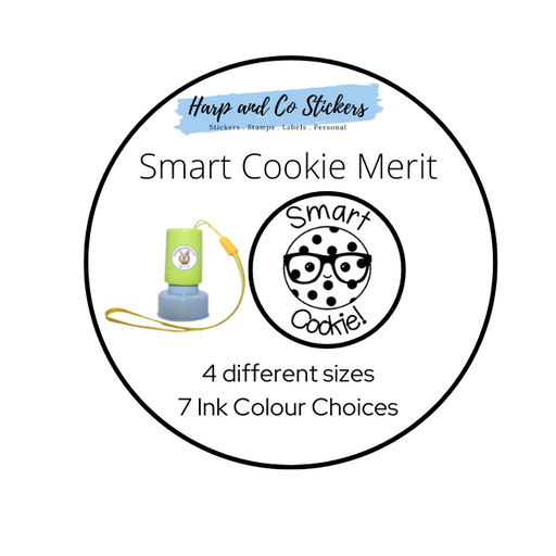 Smart Cookie Merit Stamp Celebrate cleverness with our Smart Cookie Merit Stamp! Featuring a happy, bespectacled cookie with the message "Smart Coo...