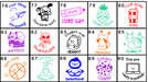 Our personalised round stamps come in three sizes: 28mm and 32mm. Each stamp is pre-inked and ready to use, with seven vibrant ink colours to choose from.