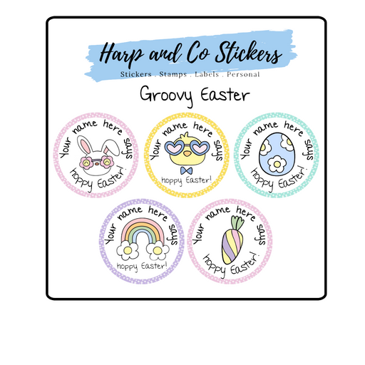 Groovy Easter Stickers Get into the Easter spirit with our Groovy Easter stickers! Featuring fun and festive illustrations like bunnies with glasse...