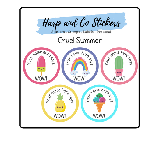 Cruel Summer Stickers Brighten up your summer with our Cruel Summer stickers! Featuring fun, summery illustrations like popsicles, rainbows, cacti,...