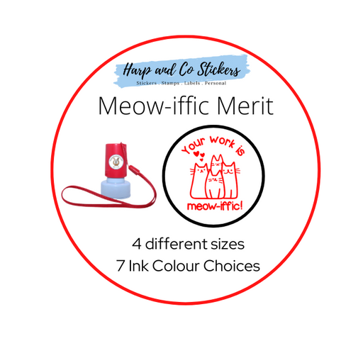 Meow-iffic Merit Stamp Paw-sitively encourage your students with our charming Meow-iffic Merit Stamp! Featuring a trio of cute cats and the fun mes...