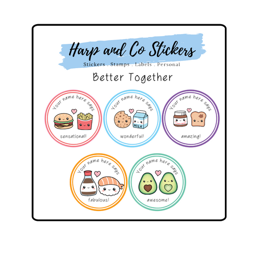 Better Together Stickers Celebrate the perfect pairs in life with our Better Together stickers! Featuring iconic duos like milk and cookies, sushi ...