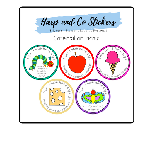 Caterpillar Picnic Stickers Show your love for learning with our Caterpillar Picnic stickers! Featuring playful illustrations of caterpillars, appl...