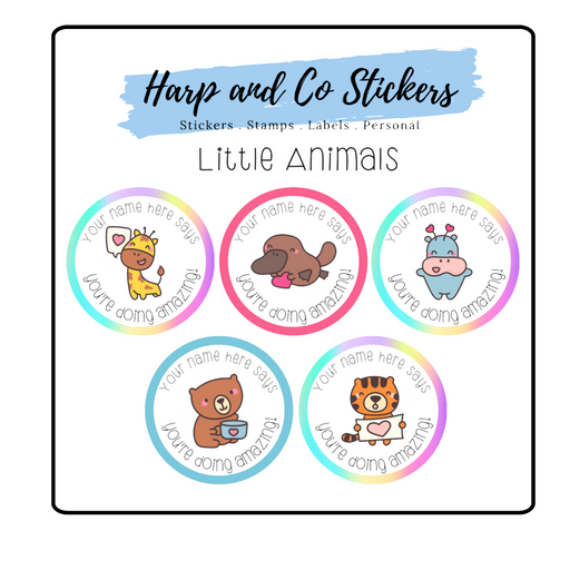 Little Animals Personalised Stickers Celebrate the joy of encouragement with our Little Animals Personalised Stickers! Featuring an adorable giraff...