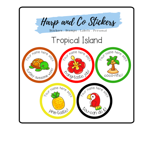 Tropical Island Stickers Bring the tropical vibes wherever you go with our Tropical Island Stickers! Featuring vibrant illustrations of a cheerful ...
