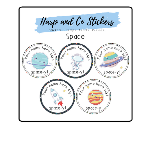 Space Stickers Show your love for space with our Space stickers! Featuring delightful illustrations of planets, a cute astronaut, and a rocket, the...