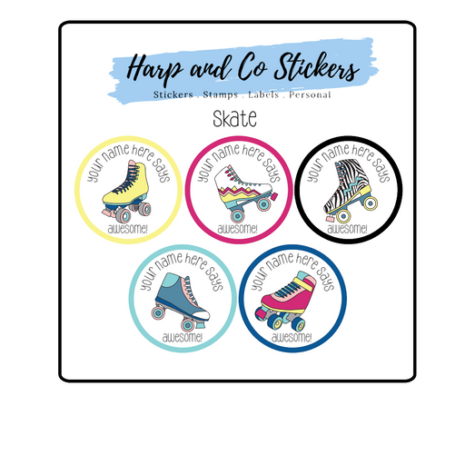 Skate Stickers Roll into fun with our Skate stickers! Featuring vibrant and stylish roller skates, these stickers come with the affirmation "awesom...