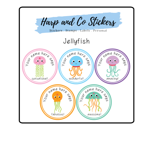 Jellyfish Stickers Dive into fun with our Jellyfish stickers! Featuring vibrant jellyfish illustrations and encouraging words like "Sensational!", ...