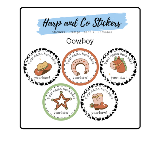 Cowboy Stickers Saddle up and celebrate with our Cowboy stickers! Featuring fun western-themed illustrations like hats, horseshoes, horses, stars, ...