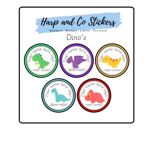 Dino's Stickers Roar into fun with our Dino's stickers! Featuring colourful dinosaur illustrations and the playful texts "Roar-some!" and "Dino-mit...
