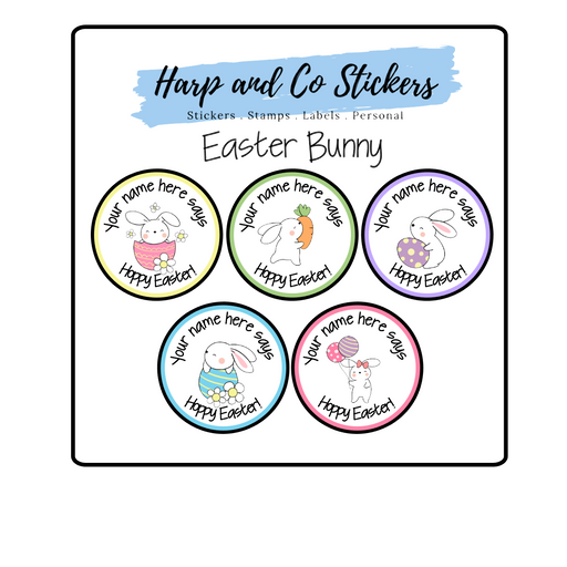 Easter Bunny Stickers Hop into the festive spirit with our Easter Bunny stickers! Featuring adorable bunny illustrations and the cheerful text "Hap...