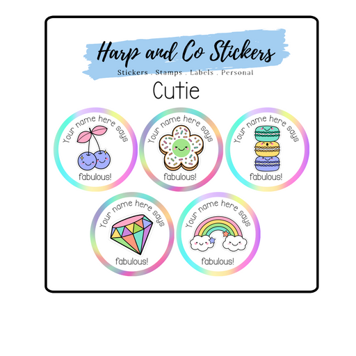 Cutie Stickers Celebrate all things cute with our Cutie stickers! Featuring adorable illustrations like cherries, donuts, macarons, gems, and rainb...