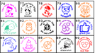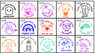 Our personalised round stamps come in three sizes: 28mm and 32mm. Each stamp is pre-inked and ready to use, with seven vibrant ink colours to choose from.